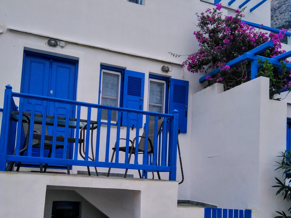 A traditional cycladic apartment bathed in light at the entrance of the port of Kamares. It's 60m2 square meters and can accommodate you with your family or friends. It has one ground floor and upper floor.